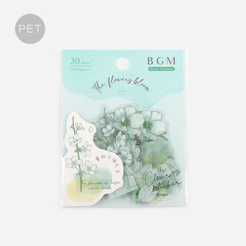 BGM PET Stickers- Mint Flowers Bloom